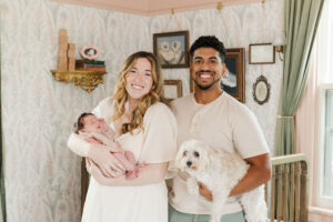 We spent time capturing all the quiet in-between moments: Olivia curled up in dad’s arms, snuggled into mom’s shoulder, and the joy on their faces as they took in this new season together. And of course, we had to include Lily—the furry big sister—who made a few appearances of her own and melted all our hearts.
